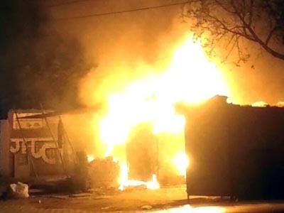 ट्रांसपोर्ट कंपनी के गोदाम में लगी भीषण आग, लाखों का सामान खाक