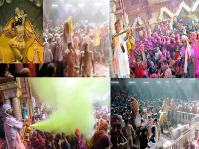 बांके बिहारी मंदिर में सोने-चांदी की पिचकारियों से भक्तों पर की टेसू के रंगों की बौछार