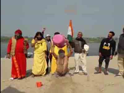 यमुना रेती से स्नान कर जताया अधिकारियों के खिलाफ रोष