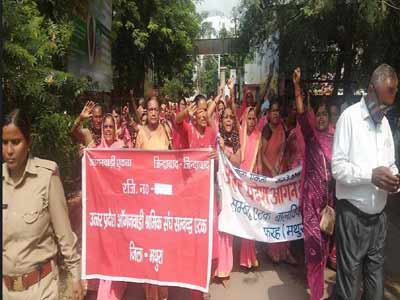 स्कीम वर्कस का कलक्ट्रेट पर प्रदर्शन