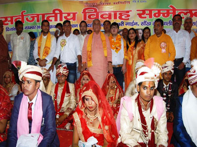 मथुरा। मां ने इच्छा जताई तो बेटे ने 35 जोडेे निर्धन परिवार की कन्याओं के सर्वजातीय विवाह का आयोजन कर दिया।