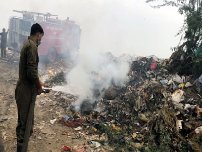 खबर का असरः नगर निगम के डंपिंग ग्राउण्ड पर लगी आग को भुजाने दौडा प्रशासन