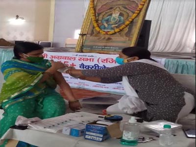 अग्रवाटिका पर अग्र समाज के महिला पुरूषों के के लिए आयोजित किया गया टीकाकरण शिविर
