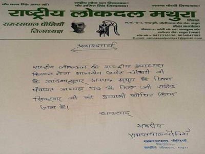 सात दिन झुका रहेगा रालोद कार्यालय पर पार्टी का झंडा