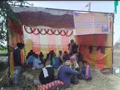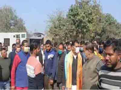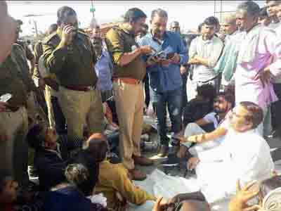 रेलवे क्रासिंग को बंद किये जाने के विरोध में धरने पर बैठे ग्रामीण