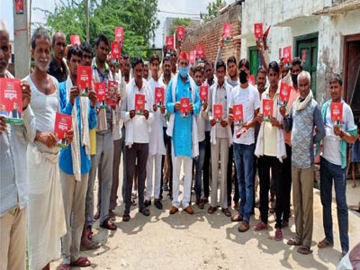 सपा कार्यकर्ताओं ने दर्जनों गांवों में बांटे आह्वान पत्र