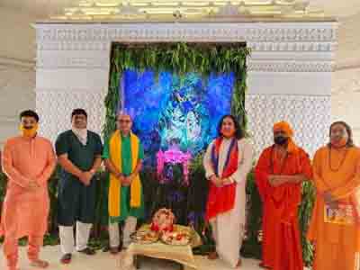 प्रियाकांत जू मंदिर में देवकीनंदन महाराज ने किया रजत शिला का पूजन