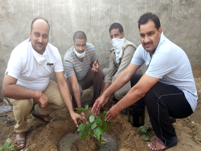 भाजपाइयों ने पुलिस चौकी परिसर में लगाये पौधे, दिया स्वच्छता का संदेश