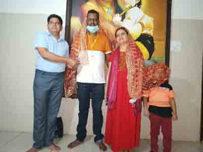 जनशक्ति जनता दल के राष्ट्रीय अध्यक्ष डॉ धर्मेन्द्र कुमार परिवार सहित का स्वागत करते पूर्व जेल विजिटर लक्ष्मण प्रसाद शर्मा