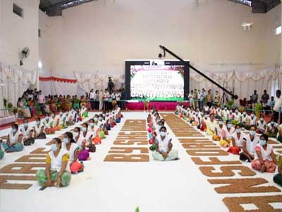 हैदराबाद। तेलंगाना के महबूबनगर जिले के महिला स्वयंसहायता समूहों ने सोमवार को 10 दिनों में 2.08 करोड़ बीज गेंदों को रोल करके उससे सबसे बड़ी सूक्ति वाक्य बनाते हुए गिनीज वल्र्ड रिकॉर्ड में जगह बनाई। महबूबनगर में आयोजित एक कार्यक्रम में, महिलाओं ने सूक्ति वाक्य बनाने के लिए बीज गेंदों की व्यवस्था की। एसएचजी महिलाओं द्वारा बनाई और लगाई गई दो करोड़ बीज गेंदों ने महबूबनगर को हेटेरो ग्रीन बेल्ट में बदल दिया।