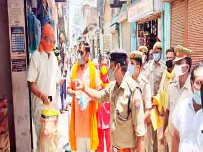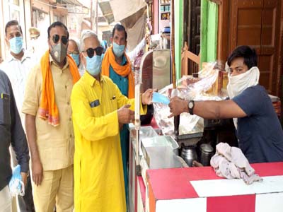 MATHURA : दुकानदारों को बांटे मास्क